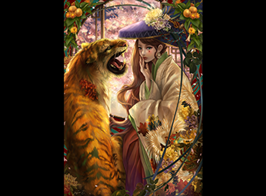 彼女は医師だった。貧しい人たちから治療費を受け取らず、代わりにみんなに杏の種を植えさせた。 杏は漢方の薬になり、そしてみんなの食糧ともなった。植えた杏の種が杏林にもなった頃、怪我をした虎が彼女を訪ねてやってきた。彼女は虎の首元の怪我を治療してやると、虎はお辞儀をし去って行ったが、数日後また彼女の前に現れた。すっかり完治していたので、彼女は帰るように促すが、虎はそこを一歩も動かなかった。それ以来、虎は彼女が出掛ける時はどこであろうと彼女を背に乗せ送り迎えをし、 夜は家の前で杏の林の番をした。彼女が亡くなっても、自分の生命が尽きるまで、何年も何年もそこを動かなかった。inspired by 神仙伝 虎守杏林