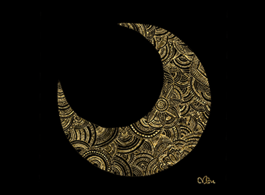 木々に囲まれた池をモチーフとしたグラフィックアートになります。夜の幻想的な雰囲気に仕上げました。