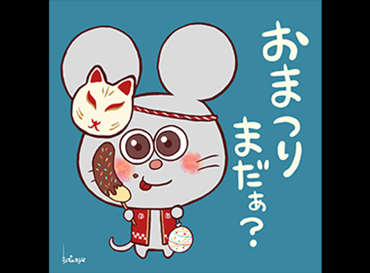くいしんぼうなひまとシード。大好きなたこやきの帽子をかぶって、屋台でお買い物!花火もきれいだね。おまつりだいすき!