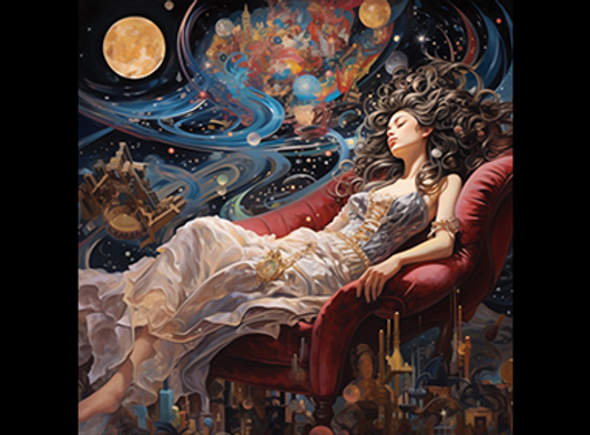 このアート作品は、宇宙の壮大な宙域とアメジストの謎めいたエネルギー、そしてタロットカードの神秘的な世界を融合した作品です。