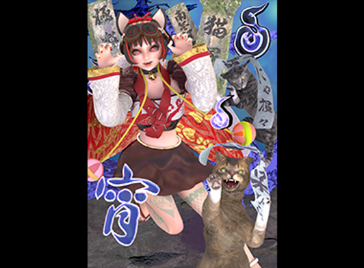 日本の書道家による3D作品です。3Dモデルは全て自作です。作品中の「宵」の文字は、筆で書いてから3Dで描きました。この作品は、ストーリー「天装奇譚」コレクションの1つです。