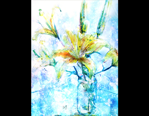 初夏~夏にかけて咲く百合の花。百合園を訪れた際に、休憩所に添えてあった百合の花をデジタル水彩タッチで描きました。季節の花の香りを視覚でも感じてみませんか☆