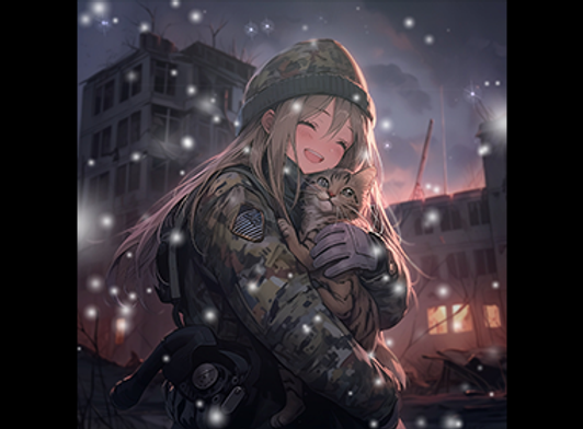 廃墟で少女とにゃんこ